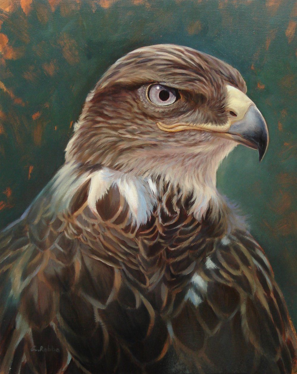 Die Porträts von Claus Rabba weisen einen hohen künstlerischen Grad auf. Sie bleiben nicht an der Oberfläche, sondern „gehen unter die Haut“. Sowohl beim Betrachter durch ihre Ausdrucksstärke als auch bei der Darstellung des Motivs mit malerischen Mitteln. Stofflichkeit wird „fühlbar“ gemacht und durch Variation in Komposition und Pinselduktus setzt er einen Fokus im Bild.